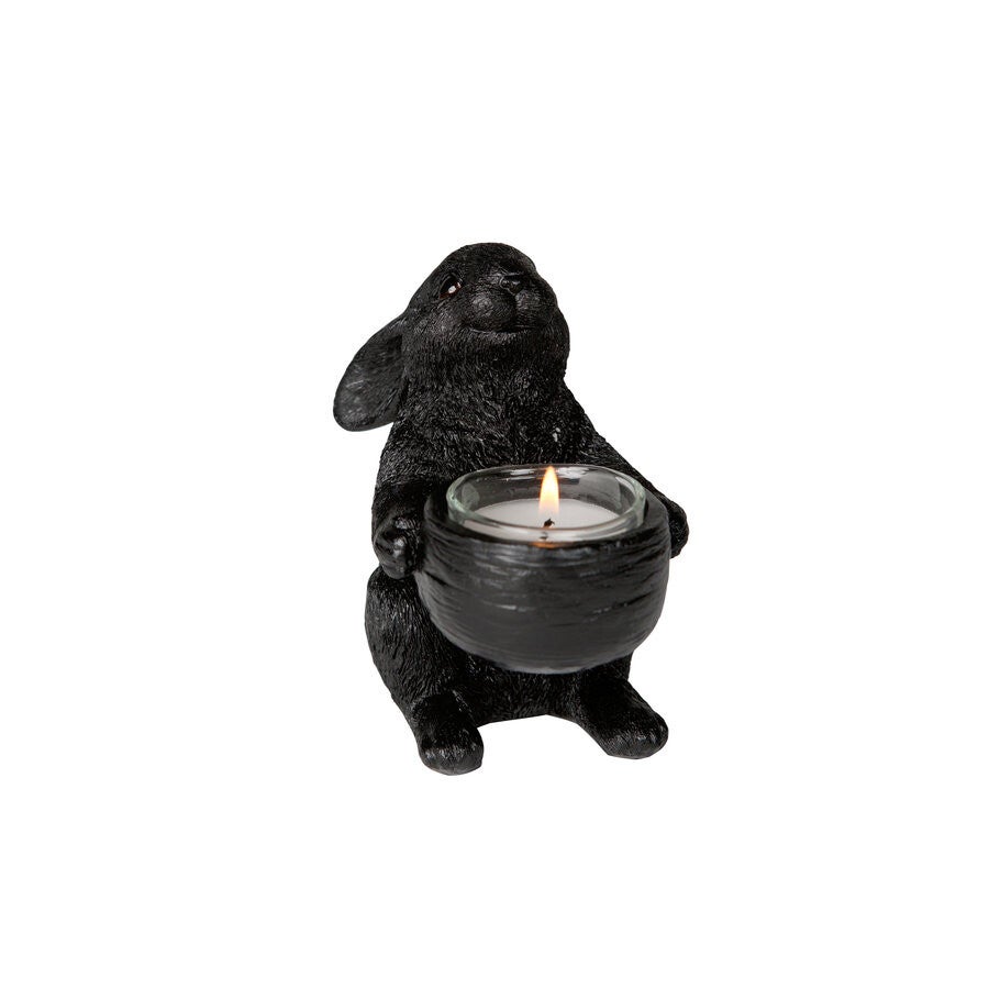Breng warmte en elegantie in huis met deze fraaie zwarte theelichthouder in de vorm van een konijn. Dit stijlvolle en gedetailleerde konijnenbeeldje houdt met zijn voorpoten een waxinelichthouder vast, wat zorgt voor een gezellige en knusse sfeer in huis.