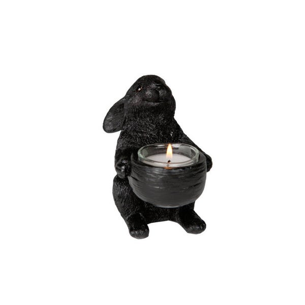 Theelichthouder | Konijn | Zwart | Kitchen Trend | Polyresin | 13x8x12,5cm