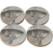 Bescherm je tafel in stijl met deze mooie houten onderzetters met een visprint. Deze set van vier onderzetters combineert functionaliteit met een prachtig design. De lichte houtkleur en de fraaie visafbeelding maken deze onderzetters een subtiele, maritieme toevoeging aan je interieur.