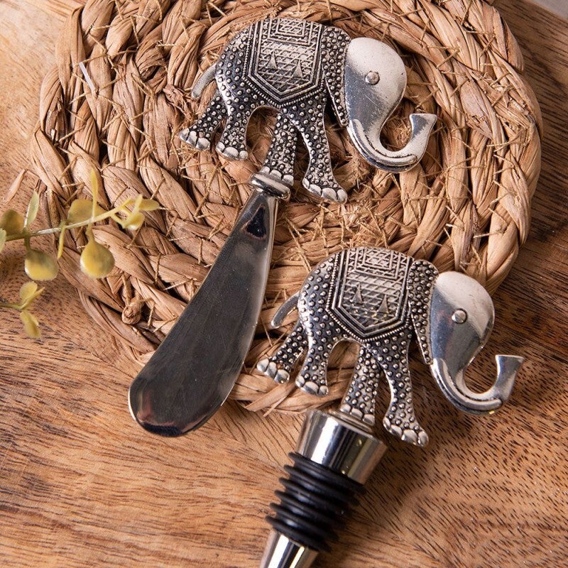 De flessenstop en kaasmesjes zijn gemaakt van roestvrij staal en van een hoge kwaliteit. En ze zien er ook nog eens geweldig uit met de prachtig gedecoreerde olifanten.