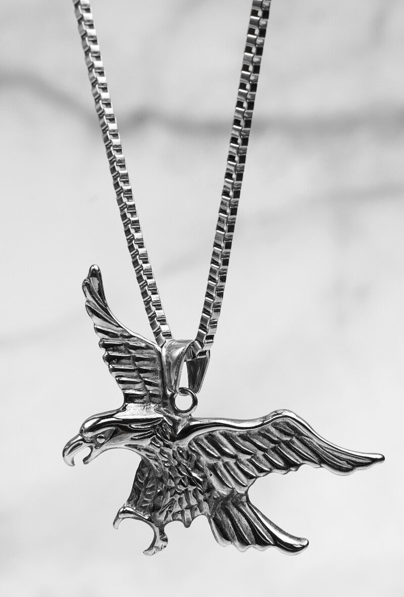 Prachtige zilverkleurige ketting met een hanger van een adelaar. De ketting is gemaakt van stainless steel en zowel geschikt voor mannen als voor vrouwen. De ketting valt exclusief de hanger 30 cm lang.