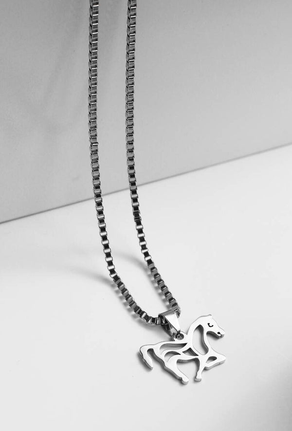 Prachtige zilverkleurige ketting met een hanger van een paard. De ketting is gemaakt van stainless steel en zowel geschikt voor mannen als voor vrouwen. De ketting valt exclusief de hanger 30 cm lang.