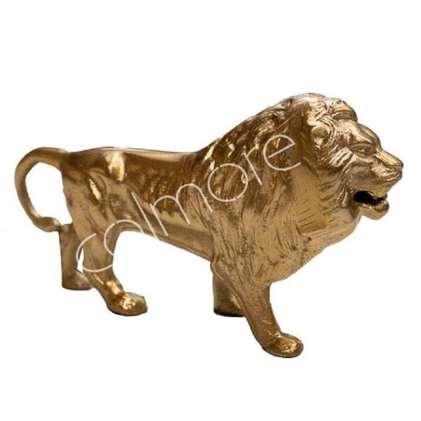 Met dit prachtige decoratieve beeld van een leeuw in goud kleur voeg je een schitterende woonaccessoire toe aan jouw interieur. De goudkleurige leeuw heeft een stoere uitstraling met zijn krachtige poten en markante kop met fijn afgewerkte manen. Deze koning van de jungle is een echte eyecatcher en past in elk interieur en bij iedere woonstijl.
