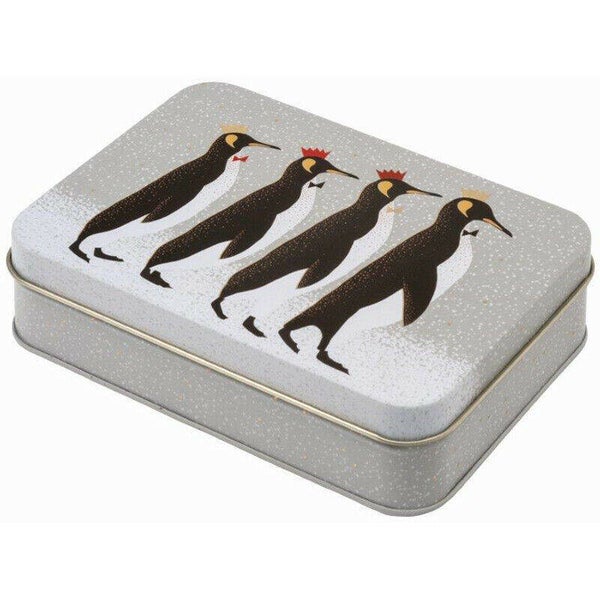 Dit handige bewaarblikje is van het gerenommeerde merk Sara Miller. Het bewaarblikje is prachtig gedecoreerd in een mooie lichtgrijze kleur en fraai afgewerkt met elegante pinguïns. Het bewaarblikje is voor vele doeleinden te gebruiken bijvoorbeeld om snoepjes of sieraden zoals oorbellen en ringen in te bewaren.