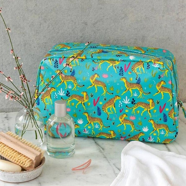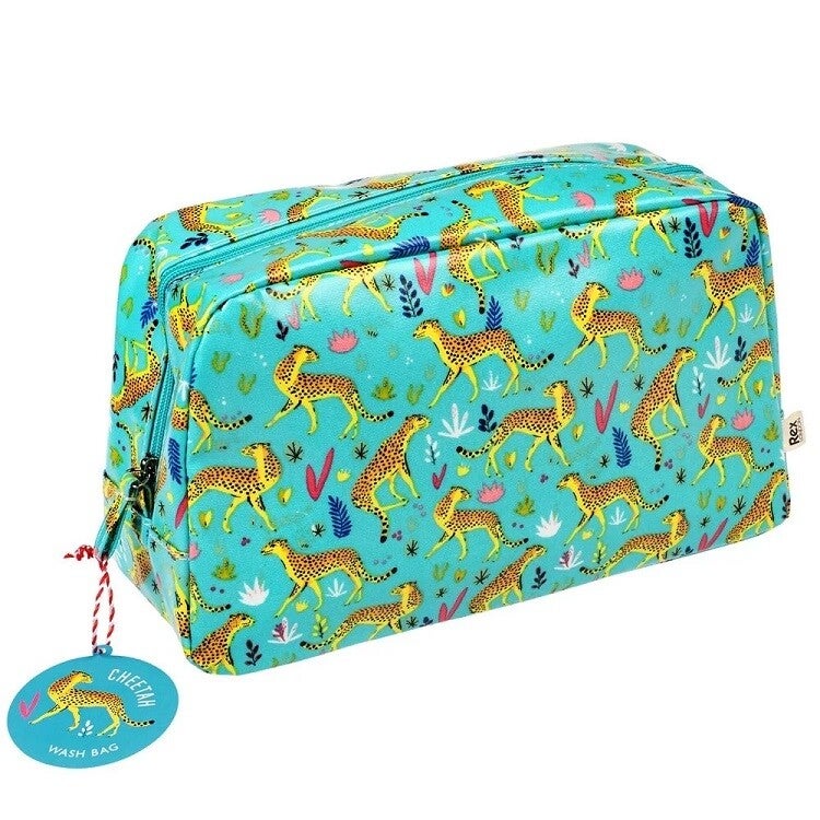 Ga stijlvol op reis met deze leuke toilettas met cheeta print van Rex London! Perfect voor vakantie, een weekendje weg of dagelijks gebruik, deze royale toilettas biedt voldoende ruimte voor al je verzorgingsproducten.