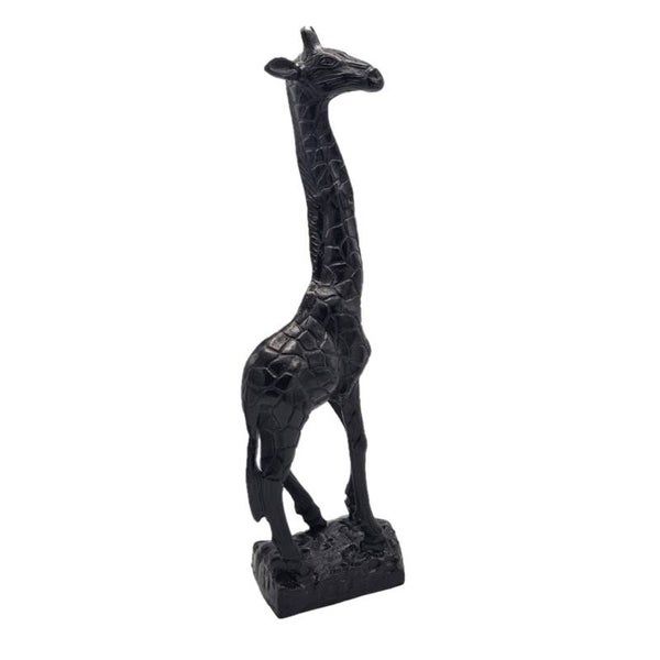 Op zoek naar een opvallend decoratief beeld voor in huis? Dit schitterende decoratieve moderne design beeld van een giraffe in zwarte kleur is een ware blikvanger in huis. Met bijna een halve meter hoog, is deze giraffe niet te missen. Dit beeld heeft een prachtig modern design en past in elk interieur. De prachtige zwarte kleur van dit ornament zorgt ervoor dat de giraffe een perfecte aanvulling is bij elke woon- en kleurstijl. Het giraffen beeld is gemaakt van hoogwaardig metaal en is handgemaakt in India. Dit beeld van een giraffe is ook verkrijgbaar in een mooie koper kleur of goud kleur.