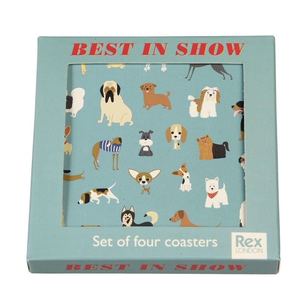 Deze mooie onderzetters met honden 'Best in Show' doen hun werk uitstekend. Dat is eigenlijk jammer want door de glazen of mokken zien wij de fraai gedecoreerde onderzetters minder goed. Elke onderzetter is voorzien van diverse leuke en verschillende honden. Welke hond is jouw favoriet? Deze prachtige onderzetters zijn beschikbaar in een set van vier.