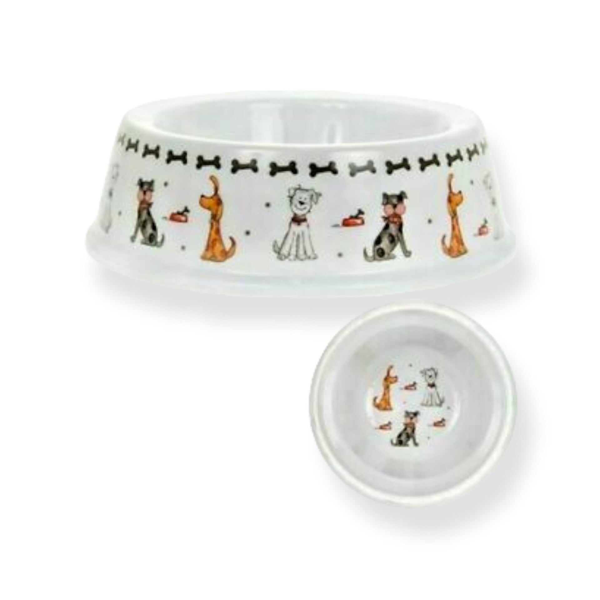 Geef jouw hond de lekkerste maaltijd met deze mooie voerbak met hondenprints. De voerbak of voerkom is overwegend wit van kleur en op de zijkant en in de kom staan diverse prints met honden in verschillende kleuren.