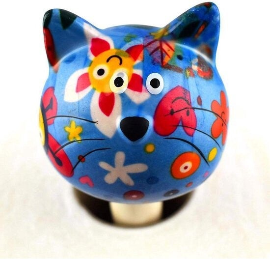 Gemorst? Geen probleem. Met deze vrolijke keukenrolhouder 'Kat Caramel' met mooie bloemetjes en hartjesprint is schoonmaken een feest. Telkens als je de keukenrol nodig hebt, kijkt Caramel je aan en krijg je vanzelf een lach op jouw gezicht. De keukenrolhouder is mooi gedecoreerd met een blauwe bloemetjes en hartjesprint (Happy Flowers Skyblue). En zoals we kennen van het merk Pomme Pidou zijn ze handgeschilderd en dus uniek. Een pareltje voor in de keuken!