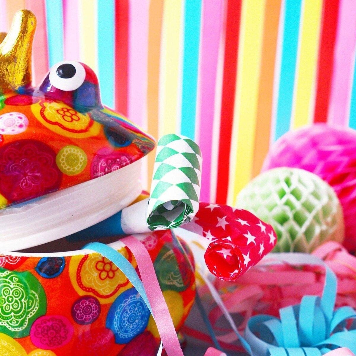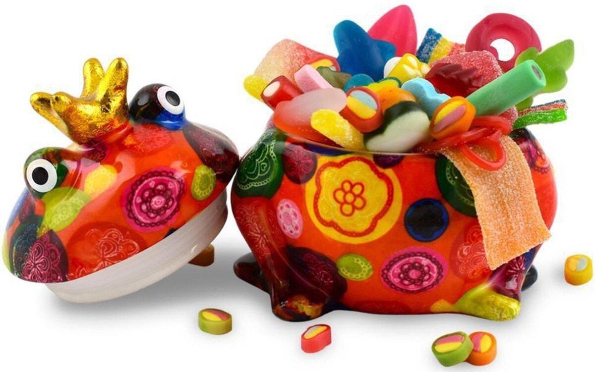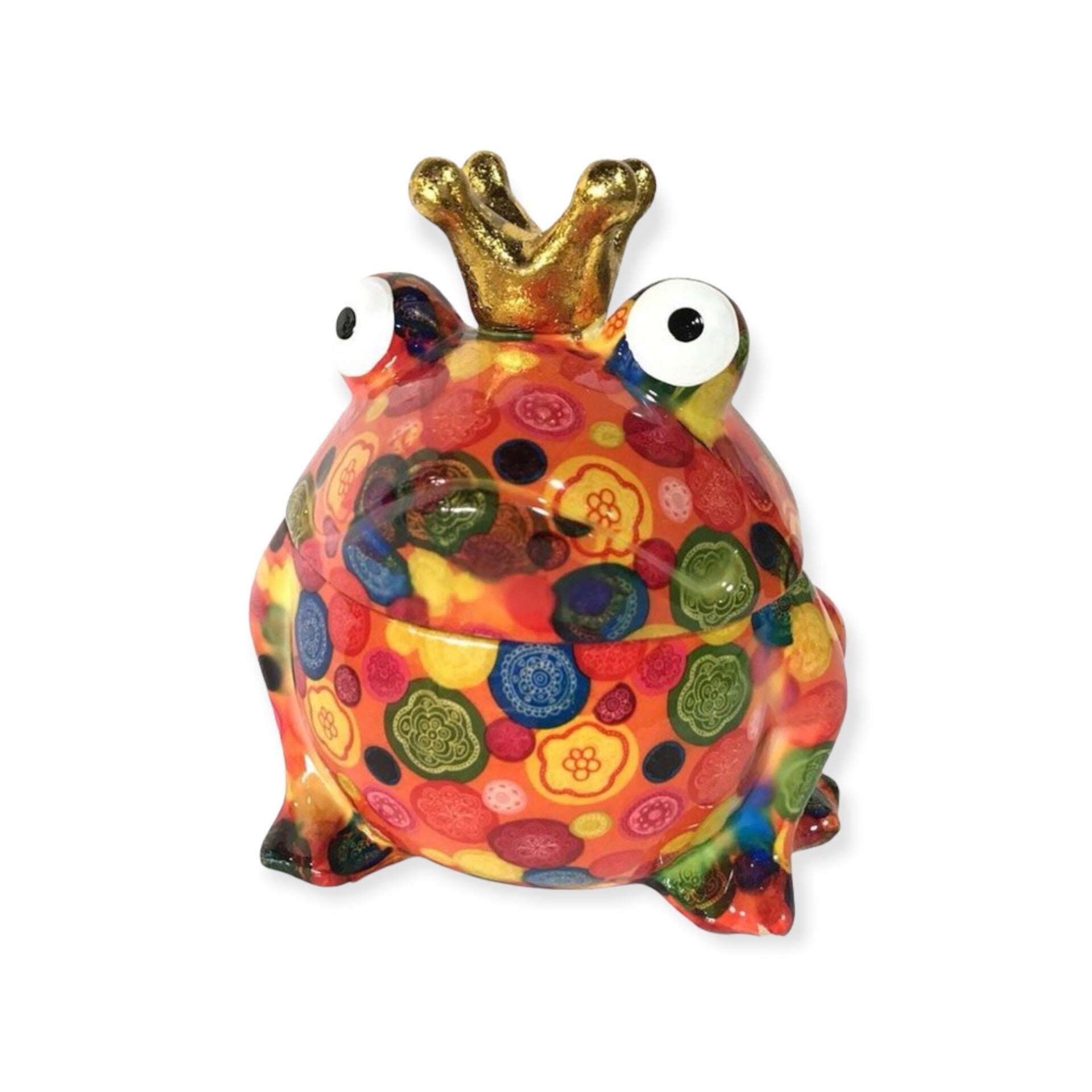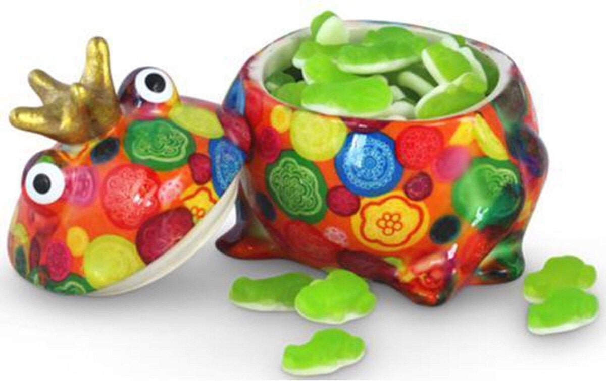 Voorraadpot / snoeppot kikker Freddy in rood met cirkels (Cool Circles)