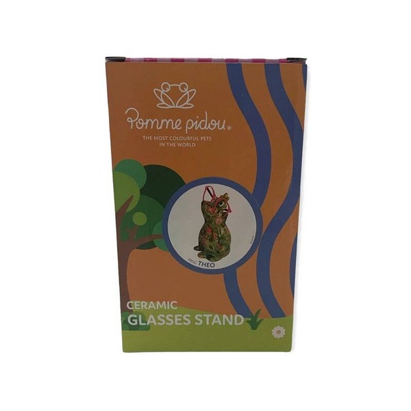 Met deze brilhouder Kikker Theo van Pomme Pidou raak jij je bril nooit meer kwijt. Maar ook zonder bril is deze decoratieve brilhouder een ware aanwinst in jouw interieur of op jouw nachtkastje. Het merk Pomme Pidou staat bekend om haar creativiteit, vrolijkheid van de beeldjes en het heldere kleurgebruik. Zo ook deze mooie brilhouder. Prachtig groen met diverse leuke afbeeldingen van bomen. Kikker Theo is met de hand geschilderd, dus uniek.