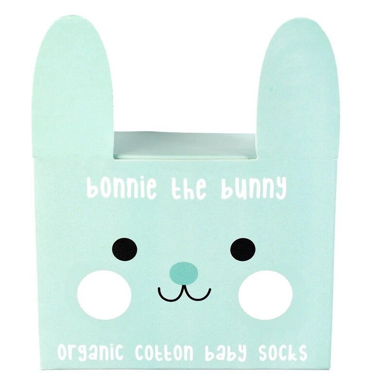 Deze schattige turquoise baby sokjes konijntje Bonnie the Bunny zijn echt superleuk voor je baby of om als kraamcadeau te geven. De konijnen sokjes zitten verpakt in een leuk doosje.
