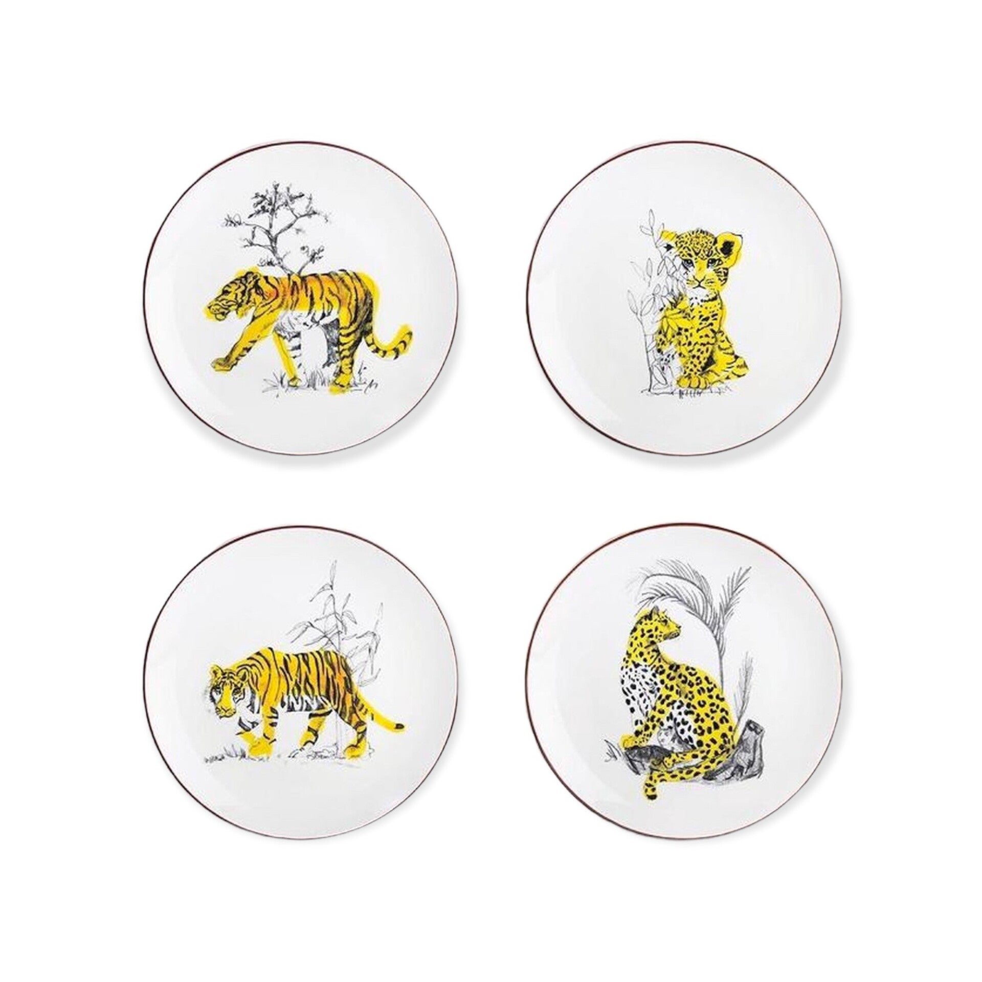 Fraaie bordjes met tijgers (set van 4)