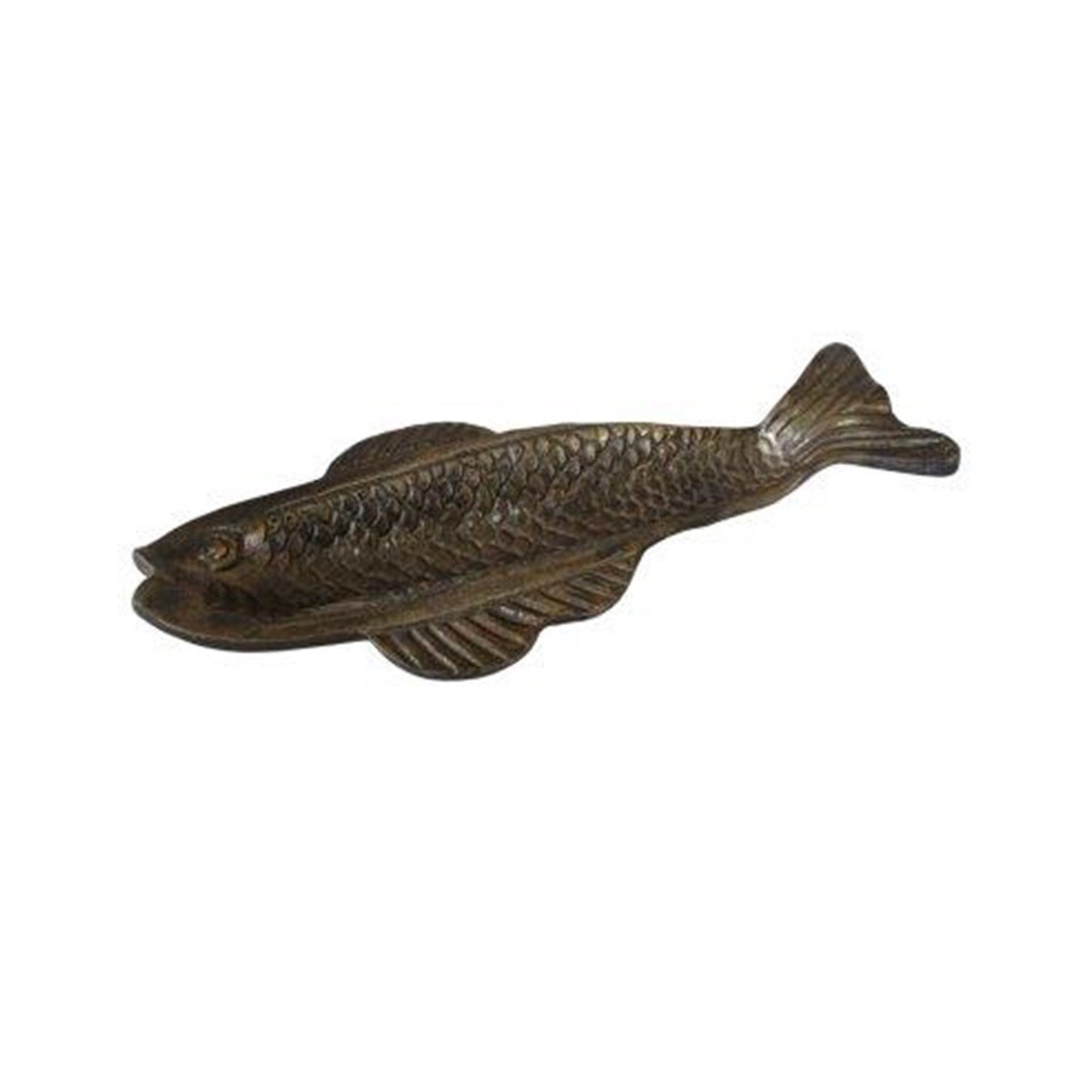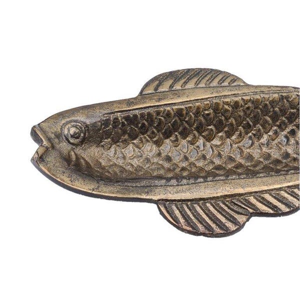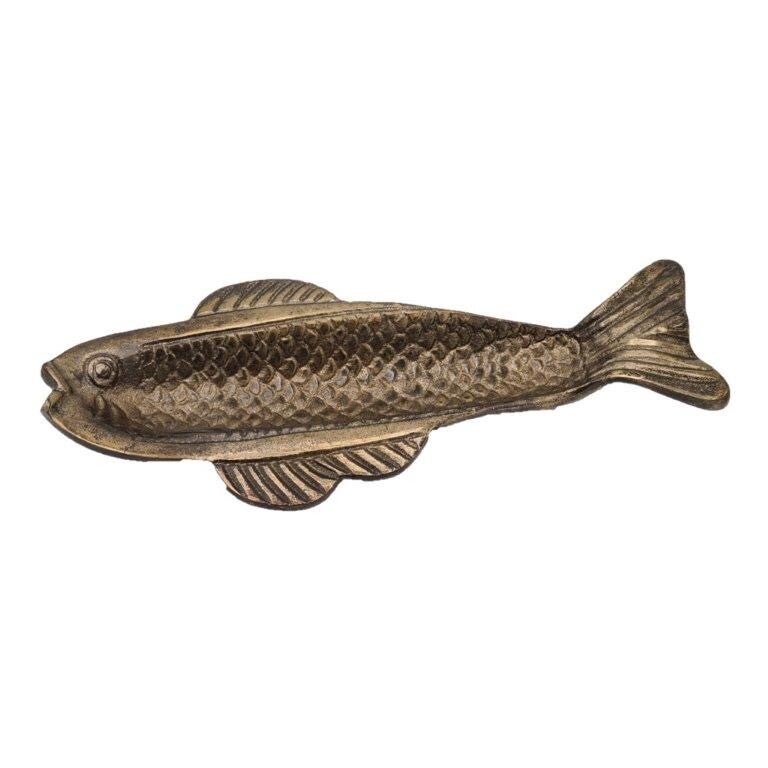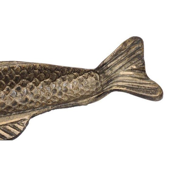 Breng een exclusieve en stijlvolle touch in huis met deze decoratieve schaal in de vorm van een vis. De oud goudkleurige afwerking en het elegante design maken deze schaal een echte blikvanger. Gebruik hem als chique decoratiestuk, als kaarsenplateau, of om kleine accessoires op een stijlvolle manier te presenteren.