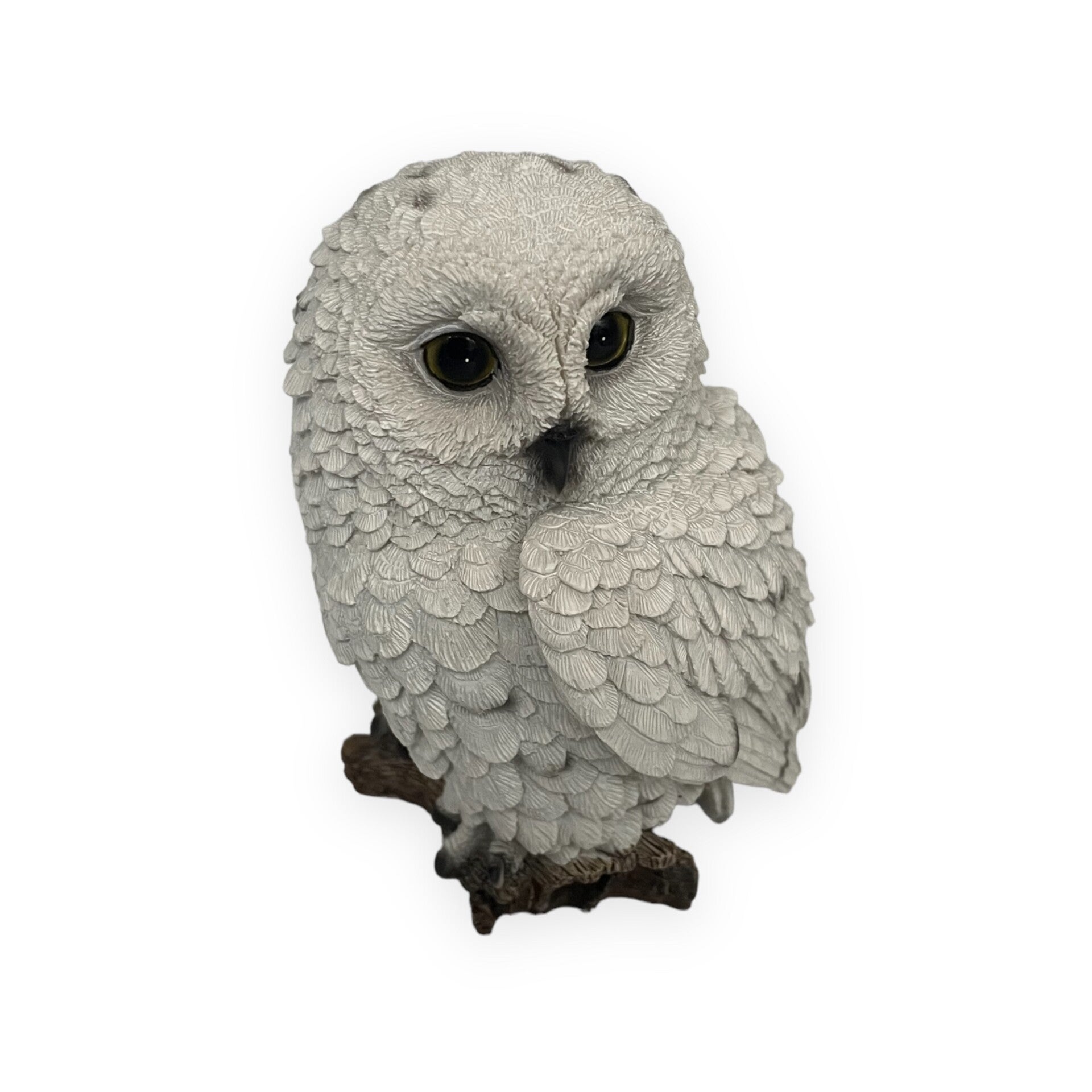 Deze mooie, levensechte witte sneeuwuil kijkt je met zijn grote ogen aan. Door de prachtige verfijnde afwerking, lijkt de uil net echt. Uilen zijn wijze dieren, dus met dit uilenbeeldje in huis heb je antwoord op alle vragen. Succes verzekerd!