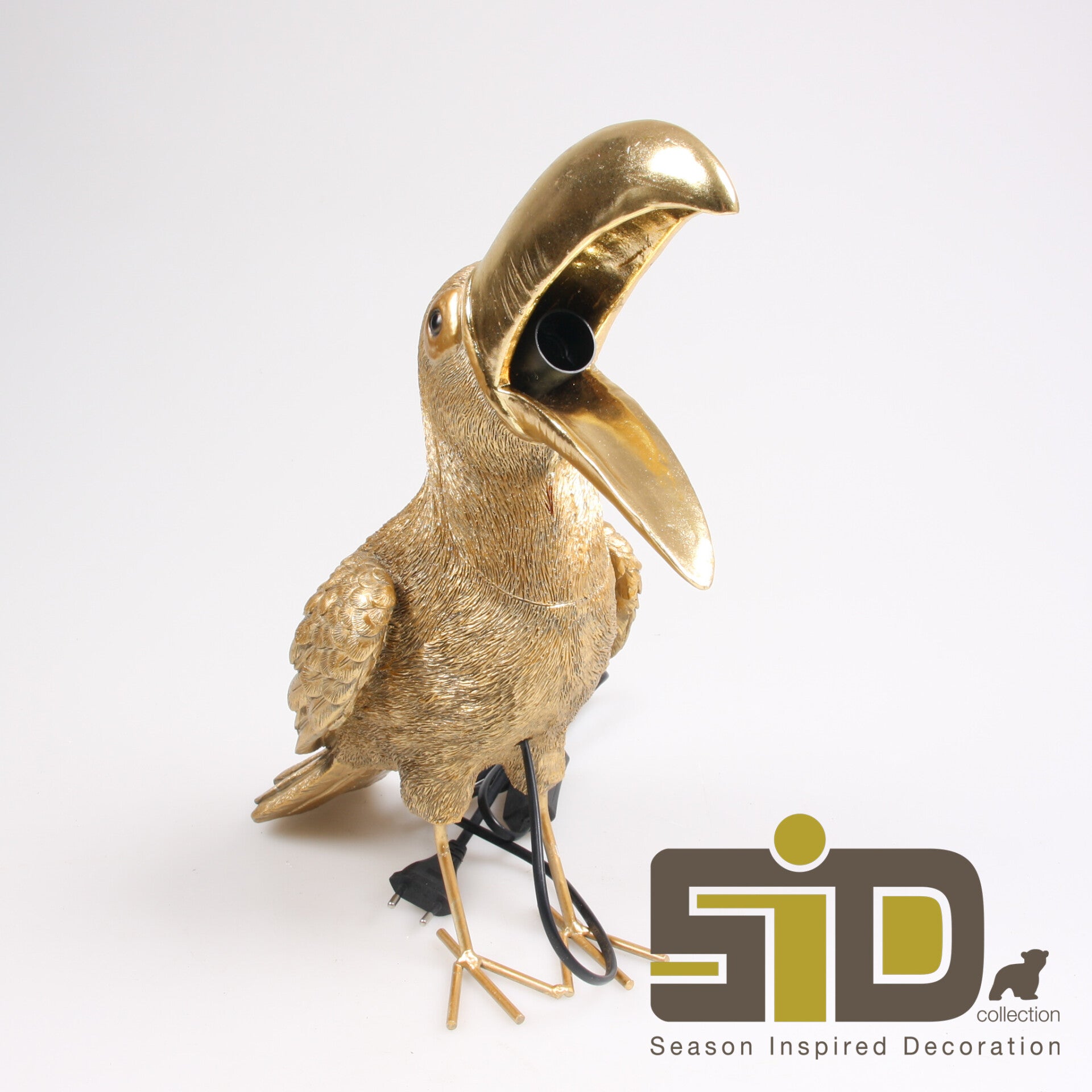 Geef je interieur een unieke twist met deze goudkleurige toekan lamp. Dit opvallende designstuk van SID Collection combineert exotische charme met moderne luxe. De gedetailleerde vormgeving en de elegante gouden afwerking maken deze lamp een echte blikvanger in elke ruimte. De lichtbron wordt speels geplaatst in de open bek van de toekan, wat een speels en origineel effect creëert. Durf jij deze gave lamp toe te voegen aan jouw interieur? Succes verzekerd!
