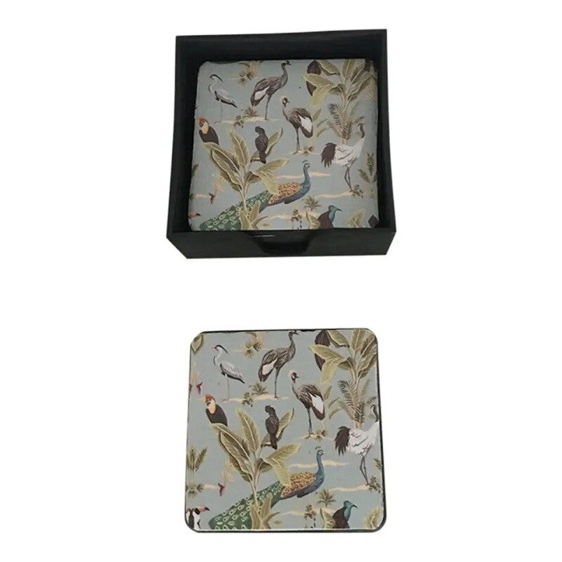 Deze mooie onderzetters met vogels doen hun werk uitstekend. Dat is eigenlijk jammer want door de glazen of mokken zien wij de fraai gedecoreerde onderzetters minder goed. Elke onderzetter is mooi zachtblauw van kleur en voorzien van diverse leuke en verschillende soorten sierlijke vogels. Welke vogel is jouw favoriet? Deze prachtige onderzetters zijn beschikbaar in een set van vier.