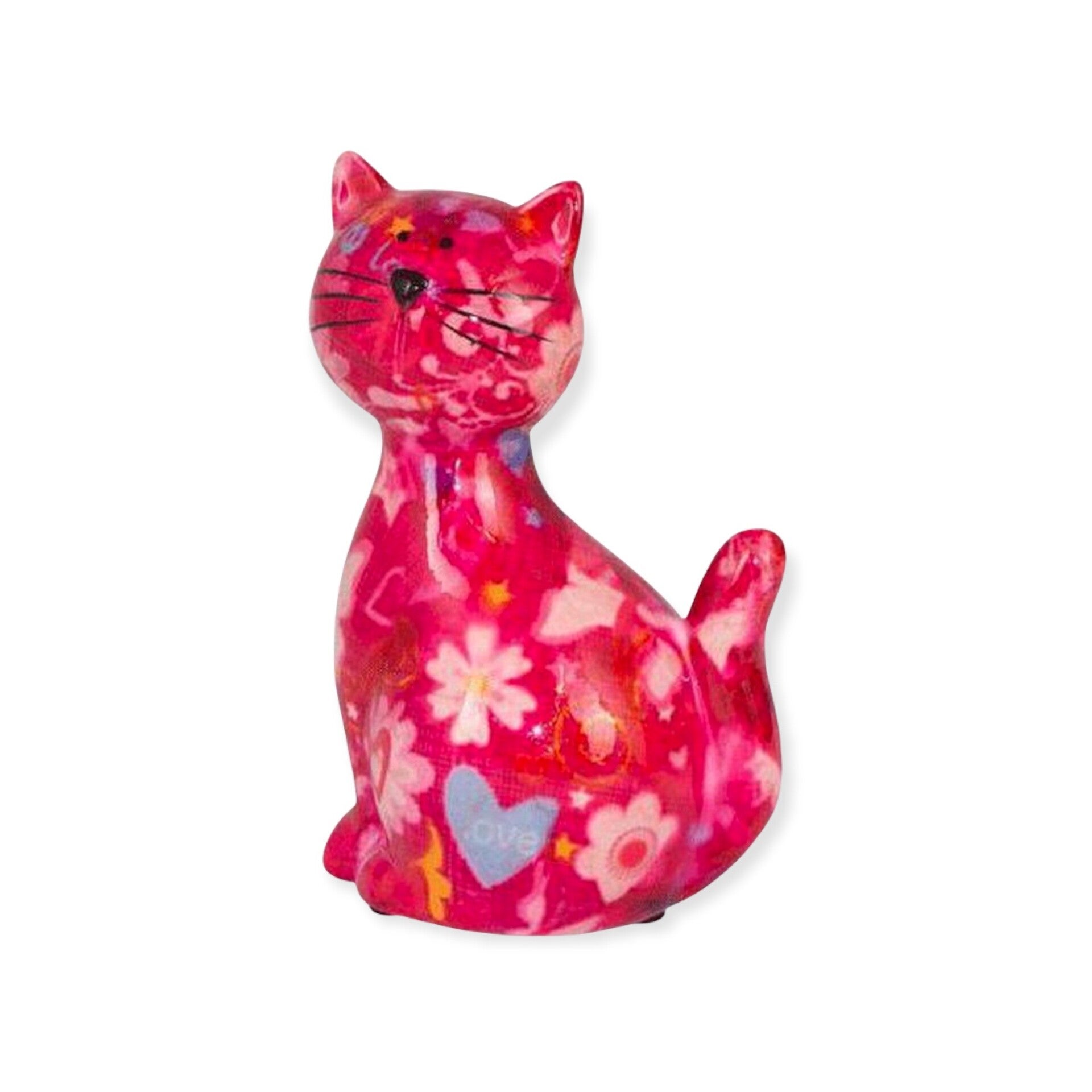Met deze brilhouder Kat Caramel van Pomme Pidou raak jij je bril nooit meer kwijt. Maar ook zonder bril is deze decoratieve brilhouder een ware aanwinst in jouw interieur of op jouw nachtkastje. Het merk Pomme Pidou staat bekend om haar creativiteit, vrolijkheid van de beeldjes en het heldere kleurgebruik. Zo ook deze mooie brilhouder. Prachtig roze met diverse leuke afbeeldingen in het thema Love and Peace Magentamix. Kat Caramel is met de hand geschilderd, dus uniek.