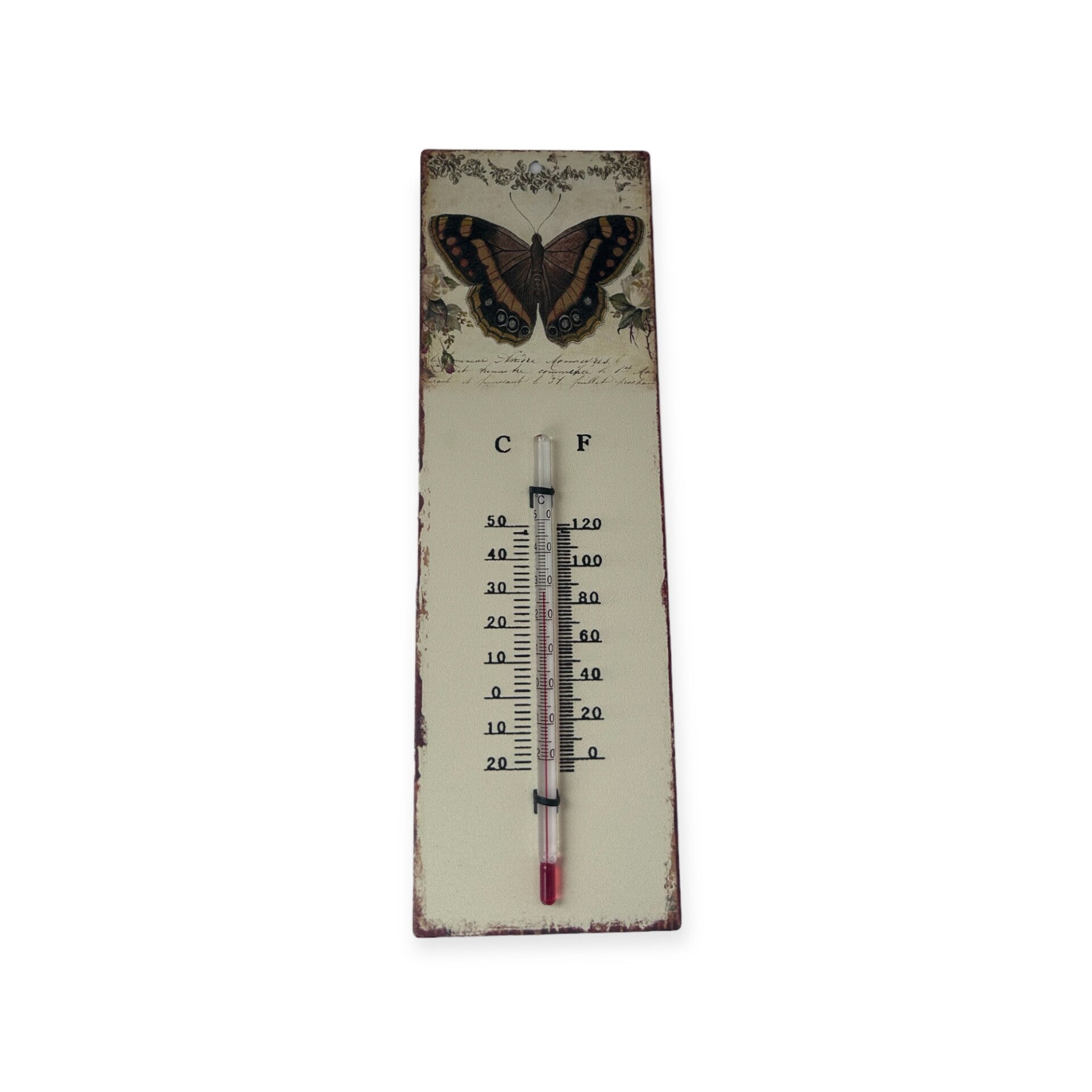 🌡️ Vintage Thermometer met Vlinder – Decoratief & Functioneel