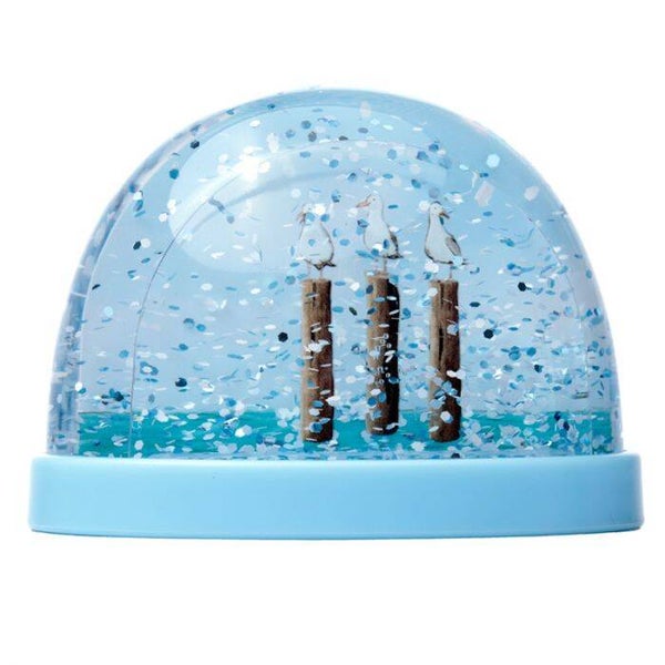 Nieuw in ons assortiment is deze leuke kinder sneeuwbol met glitters. In de sneeuwbol bevind zich een leuk decor van zeemeeuwen op een boei. De sneeuwbol is van goede kwaliteit en prachtig modern vormgegeven. De bol is kleurrijk en past in elke kinderkamer. En wil je het laten sneeuwen? Draai dan de snow globe om en weer terug en de sneeuw van glitters dwarrelt op en langs de zeemeeuwen.