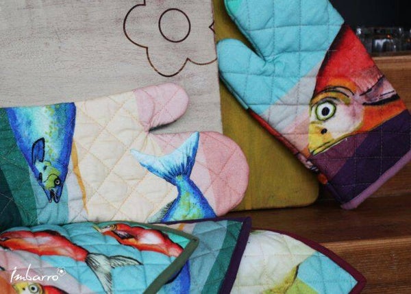 Met deze kleurrijke pannenlap vis "La Palma" in een set van 2 is bakken in de oven een waar feestje. Deze pannenlappen zijn fraai gedecoreerd met vissen en kent mooie kleurtinten. De pannenlap van het merk Imbarro is van een uitstekende kwaliteit. En ook als je de pannenlappen niet gebruikt, geven ze kleur aan de keuken.