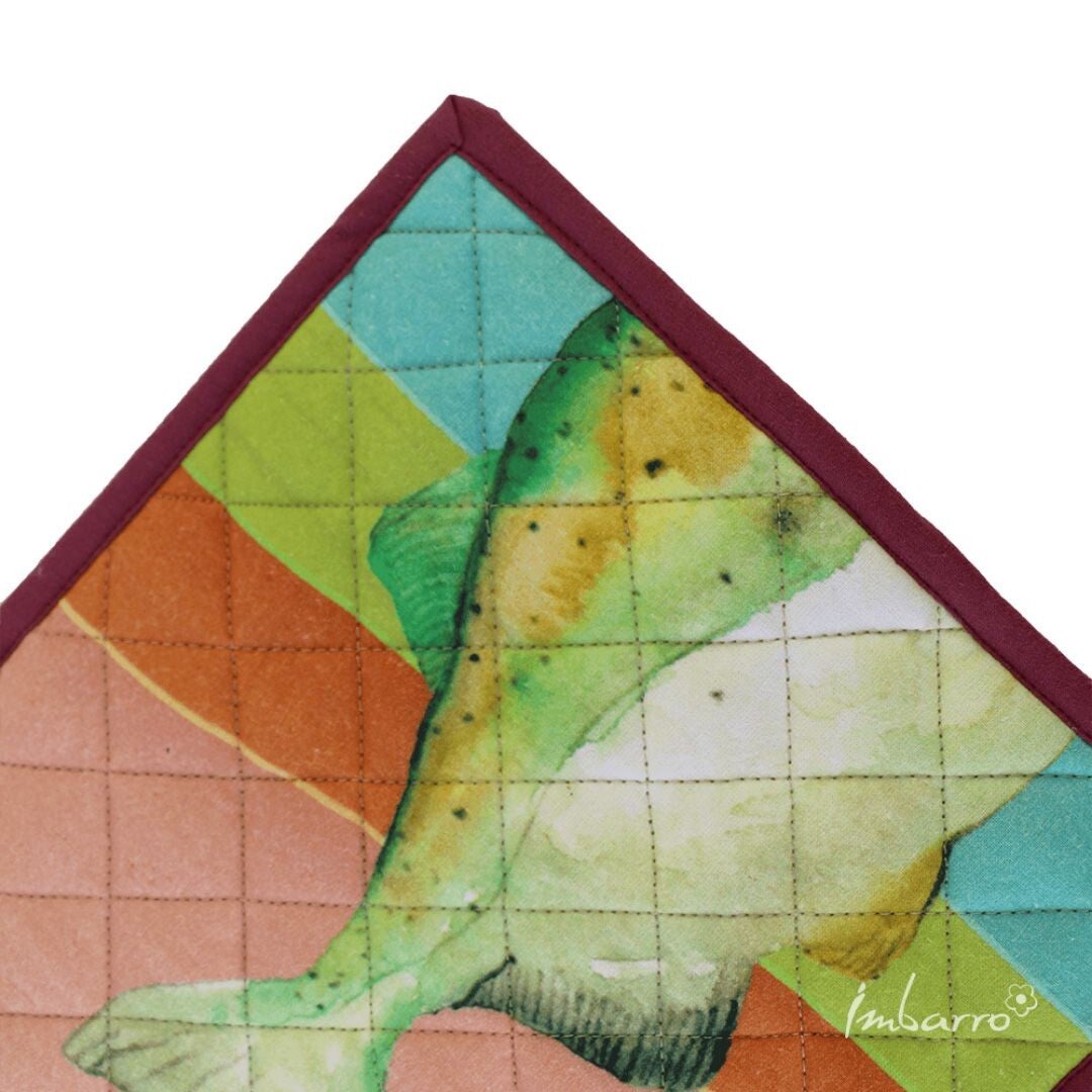 Maak van bakken en koken een feestje met deze kleurrijke pannenlappen in de vorm van een vis! Deze set van 2 van Imbarro is niet alleen praktisch, maar ook een stijlvolle toevoeging aan je keuken. De fraaie visdecoratie en levendige kleuren zorgen ervoor dat deze pannenlappen opvallen, zelfs als je ze niet gebruikt.