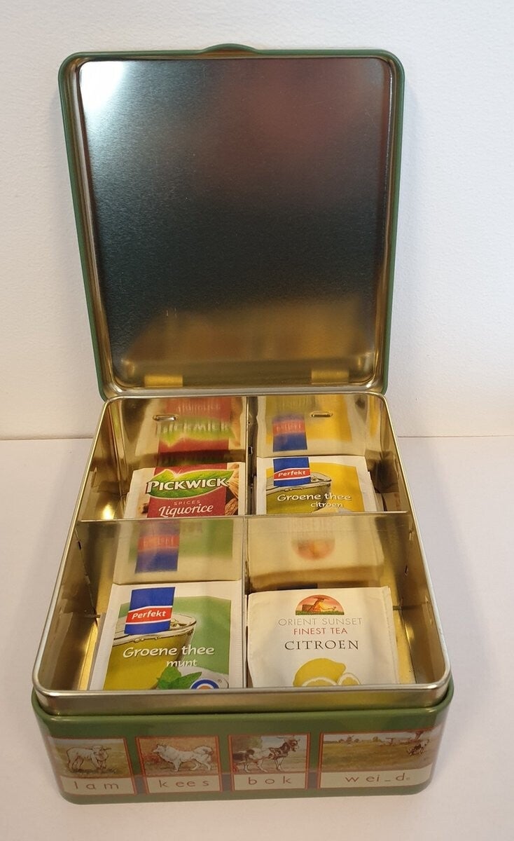 Of je het nu gebruikt als theeblik, bewaarblik of gewoon als eyecatcher in de keuken: dit vrolijke blik met retro schoolprint zorgt gegarandeerd voor gespreksstof én een glimlach. En als je kind of kleinkind vraagt wat ‘aap, noot, mies’ betekent? Dan heb jij het perfecte verhaal paraat!