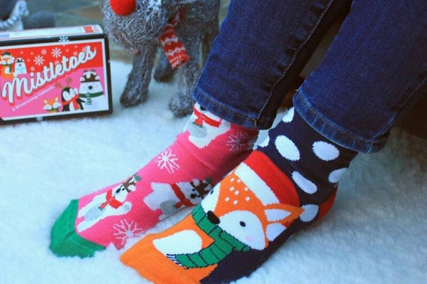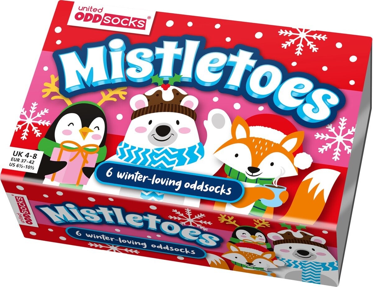 Deze mistletoes sokken in een mooie geschenkdoos zijn echt de perfecte sokken en het perfecte cadeau voor de winter. Het zijn 6 losse sokken die onderling te matchen zijn. Op de sokken staan onder andere een pinguïn, vos en een ijsbeer afgebeeld.