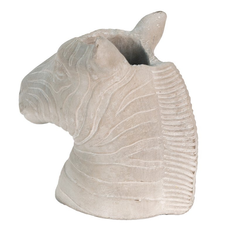 Breng de woeste Afrikaanse savanne sfeer in huis met deze authentieke bloempot zebra! De gedetailleerde zebrakop in grijstinten met een subtiele roze gloed geeft deze bloempot een prachtige antieke uitstraling. Of je hem nu gebruikt als bloempot voor kunstplanten of als decoratief sculptuur, deze zebra voegt gegarandeerd een speels en stijlvol element toe aan je interieur.