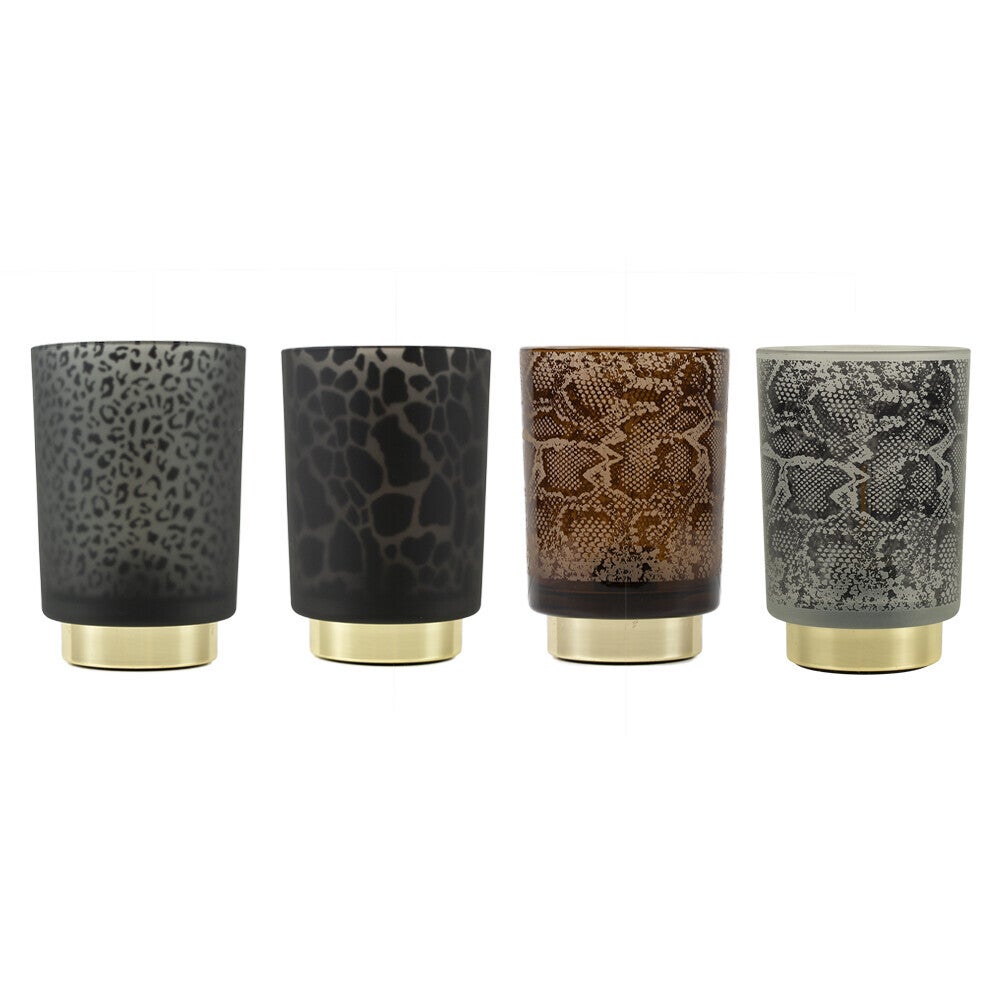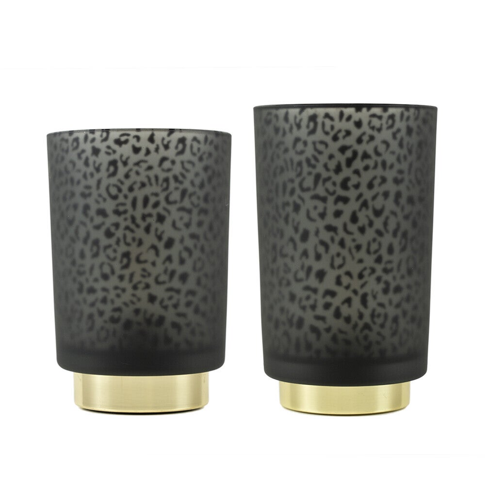 Deze cheetahprint lamp werkt op batterijen en wordt geleverd met een LED lichtbron. Hij is verkrijgbaar in twee formaten (15 cm en 20 cm) en ook als set van 2 te koop. Perfect voor liefhebbers van dierenprints en stijlvolle woonaccessoires!