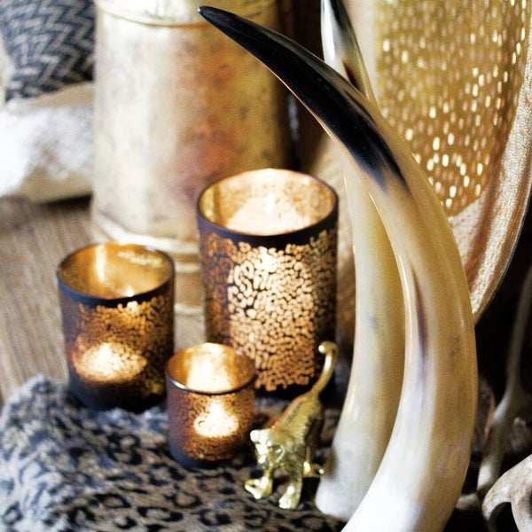 Luxe Theelichthouders met Jaguarprint – Zwart & Goud