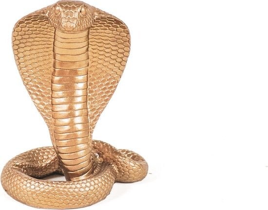 Dit prachtige beeld van een Cobra slang goud is een aanwinst voor in huis. De schitterende Cobra slang heeft een mooie gouden kleur en is prachtig vormgegeven en voorzien van vele schitterende details. Dit beeld van een Cobra slang is erg geschikt als woondecoratie en staat prachtig in elk interieur.
