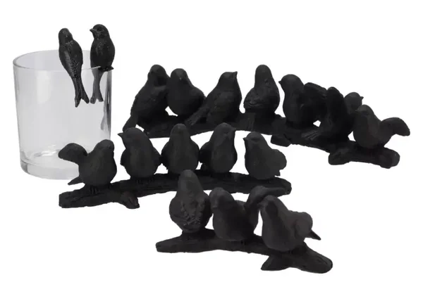 Met dit mooie decoratieve zwarte beeld van 7 vogels op een tak, breng je sfeer aan in het interieur. De vrolijke voorstelling van 7 vogels op een rijtje op een stuk tak is een genot om naar te kijken. De zwarte kleur zorgt voor een mooi accent. Geef dit beeld een fijn plekje op de dressoirkast, op een bijzettafeltje of in een open kast. Sfeer gegarandeerd met dit mooie beeldje.