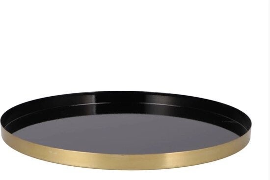 Dienblad | Rond | Zwart | Goud | Metaal | 3 afmetingen