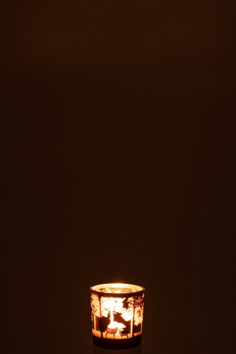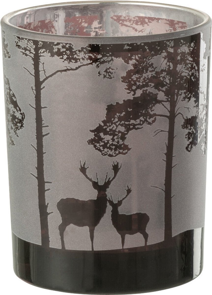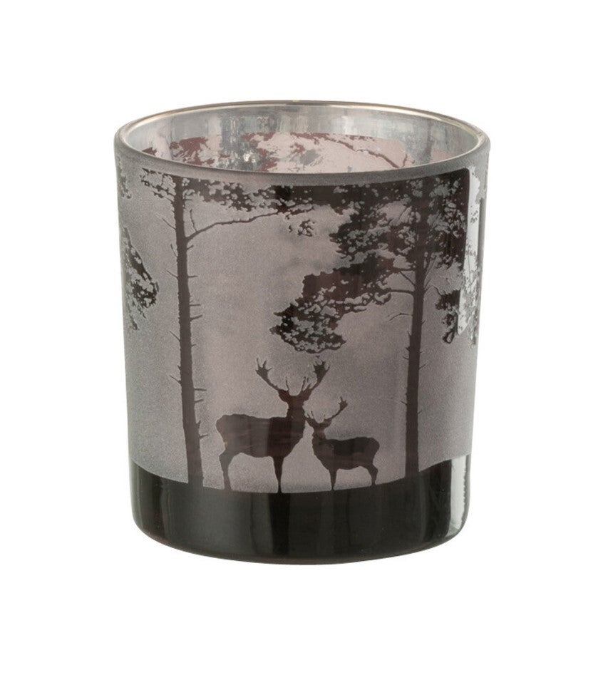 Theelichthouder | Hert | Bos | Zwart | Grijs | J-line | Glas | 7x7x8cm