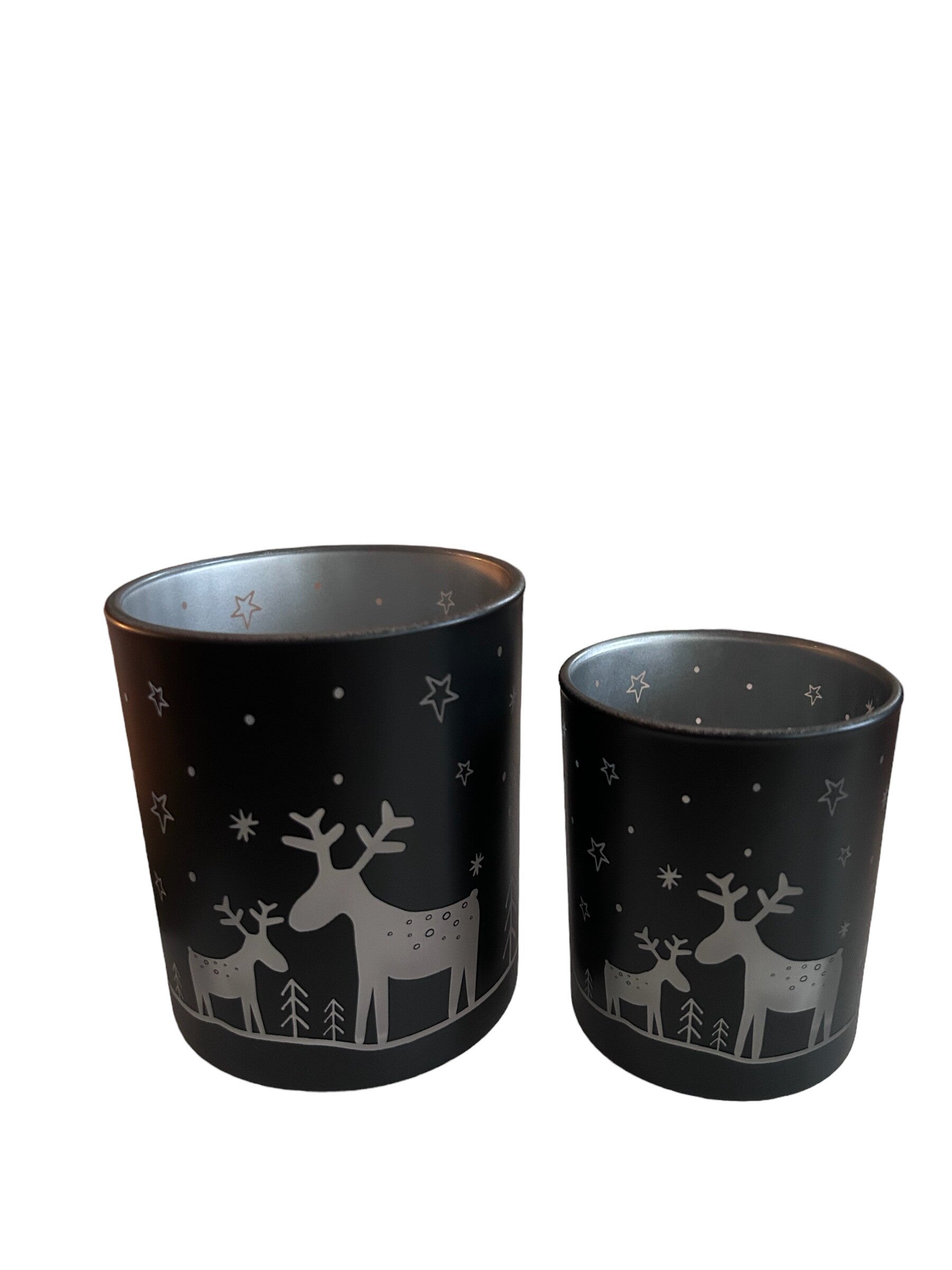 Theelichthouder | Rendier | Zwart | Grijs | Glas | 2 afmetingen