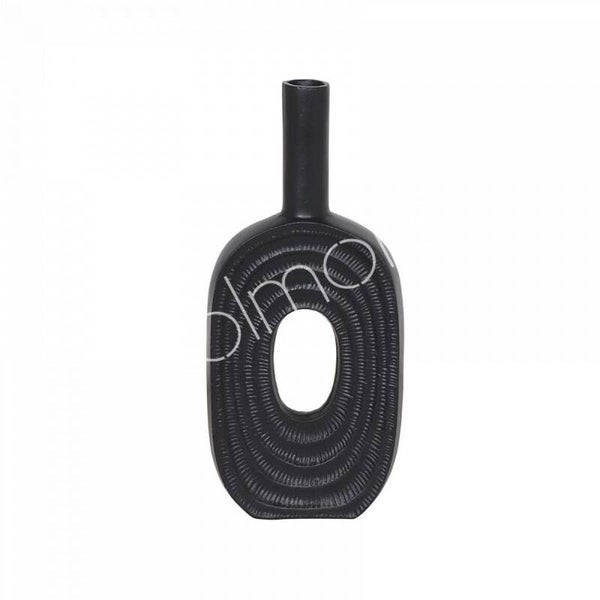 Dankzij zijn slanke, ovale vorm en matzwarte afwerking past deze vaas moeiteloos in diverse interieurstijlen, van modern en industrieel tot klassiek en minimalistisch. De hoogwaardige aluminium afwerking zorgt voor een chique en stoere uitstraling, met subtiele oneffenheden die het materiaal extra karakter geven.