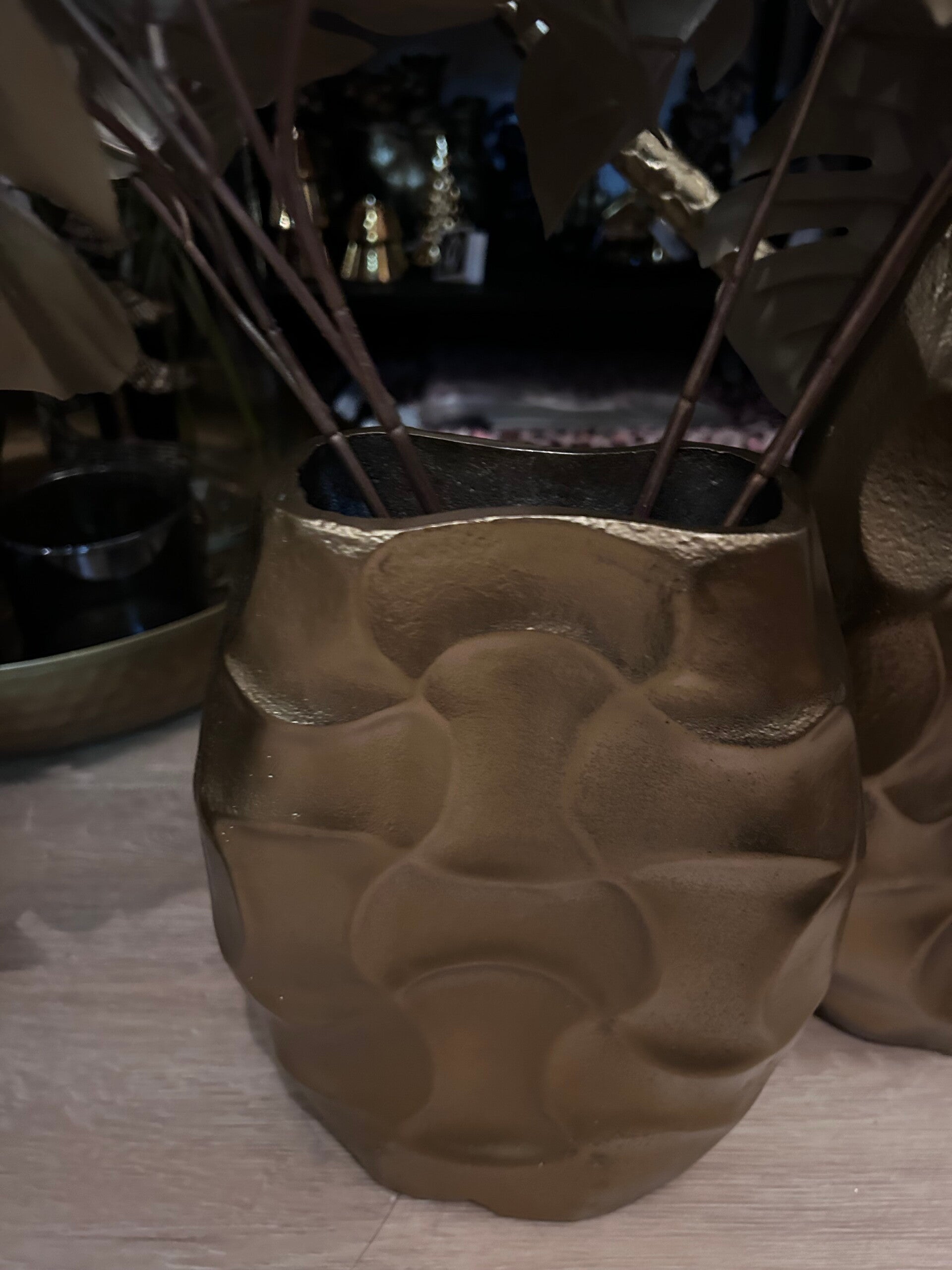 Ontdek onze prachtige gouden aluminium vaas van Colmore, verfraaid met een elegant relief patroon. Deze luxe vaas voegt een vleugje natuurlijke schoonheid en verfijning toe aan je interieur. De glanzende gouden afwerking en het delicaat uitgesneden relief patroon maken dit decoratiestuk tot een tijdloze eyecatcher. Of je het nu solo plaatst of met een boeket verse bloemen, deze vaas straalt klasse uit in elke ruimte. Verrijk je interieur met deze schitterende gouden vaas van Colmore en geniet van tijdloze elegantie. Beschikbaar in 2 maten: groot (31 cm) en klein (26 cm).