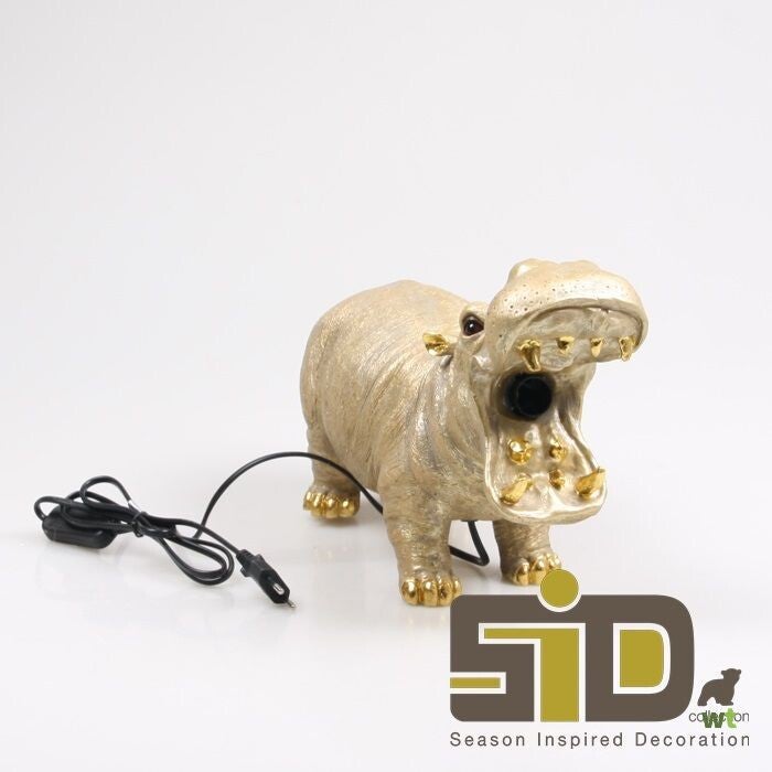 Deze gouden nijlpaardlamp is niet alleen een functionele lichtbron, maar ook een stijlvol decoratiestuk dat perfect past bij liefhebbers van unieke woonaccessoires.