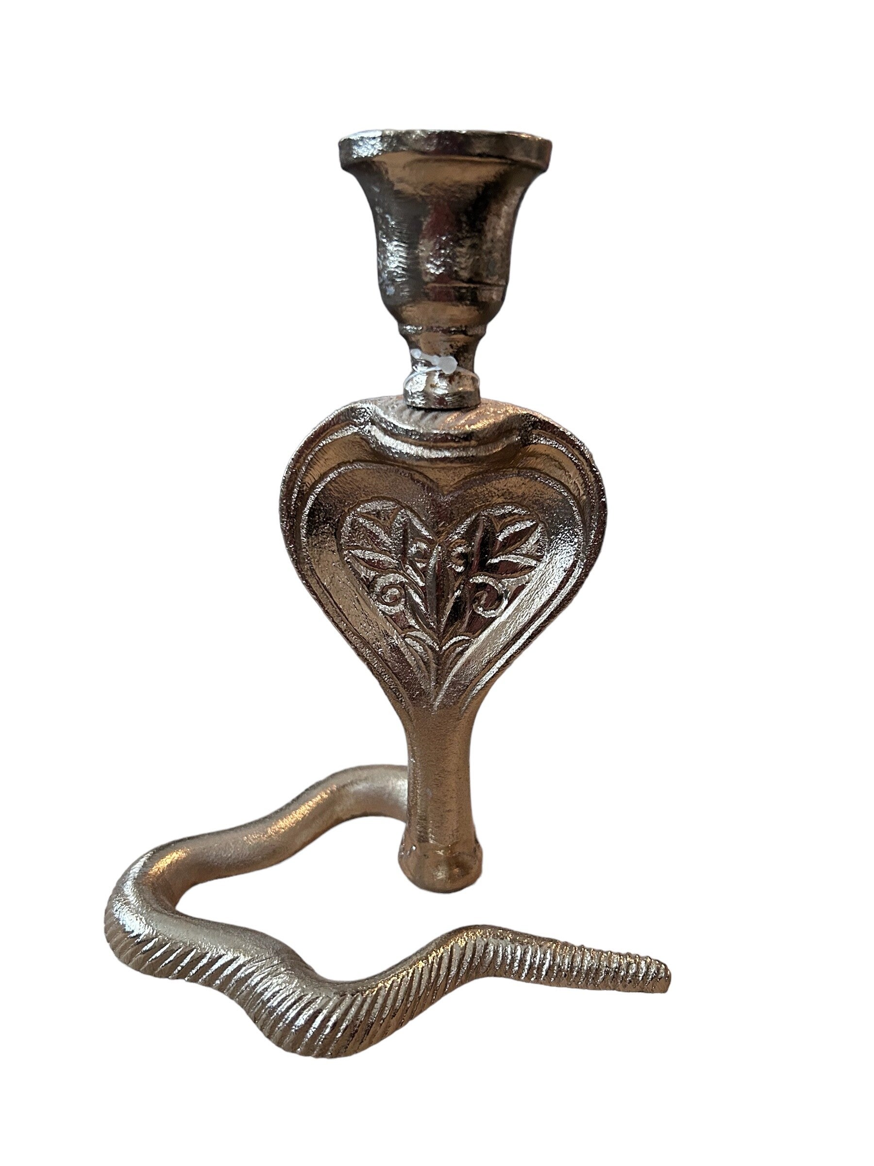Breng een vleugje mystiek en elegantie in je interieur met deze prachtige gouden kandelaar in de vorm van een cobra. De cobra is een eeuwenoud symbool van kracht, bescherming en wijsheid, en deze gedetailleerde kandelaar vangt die betoverende uitstraling perfect.