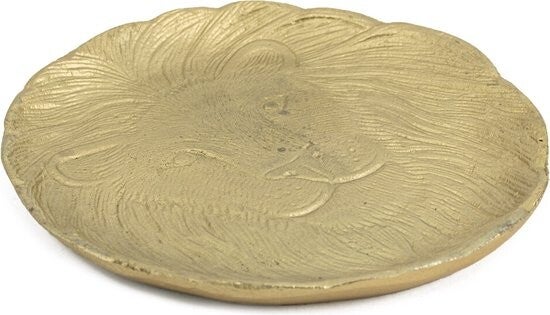Dit leuke metalen schaaltje in de kleur goud en in de vorm van een leeuwenkop met manen is het perfecte schaaltje om jouw amberblokje op te leggen.