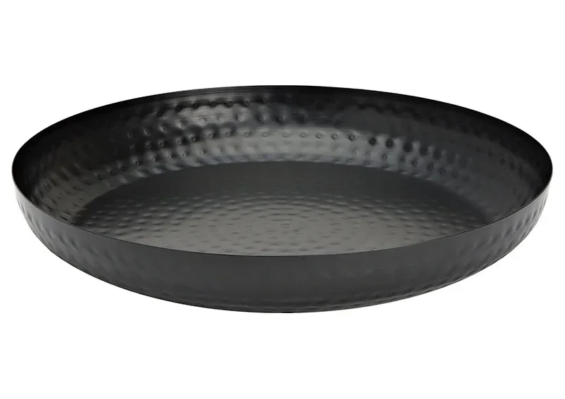Met dit mooie ronde decoratieve dienblad in de kleur zwart breng je gegarandeerd sfeer aan in jouw interieur. Het dienblad heeft een stijlvolle zwarte kleur en is daardoor heel goed te combineren met allerlei accessoires. De rand van het dienblad is zowel aan de buitenzijde als aan de binnenzijde voorzien van een subtiel reliëf van stippen. Het decoratieve dienblad heeft echt talloze mogelijkheden. Het dienblad kan dienen als onderbord voor allerlei andere mooie woonaccessoires van Krokomingo zoals beelden van dieren, kandelaars, windlichten en theelichthouders, (LED)kaarsen en vazen. Het dienblad is perfect voor bijvoorbeeld op de eettafel of op een salontafel of op het dressoir. Kortom, dit mooie zwarte dienblad is de onmisbare sfeermaker van jouw interieur.