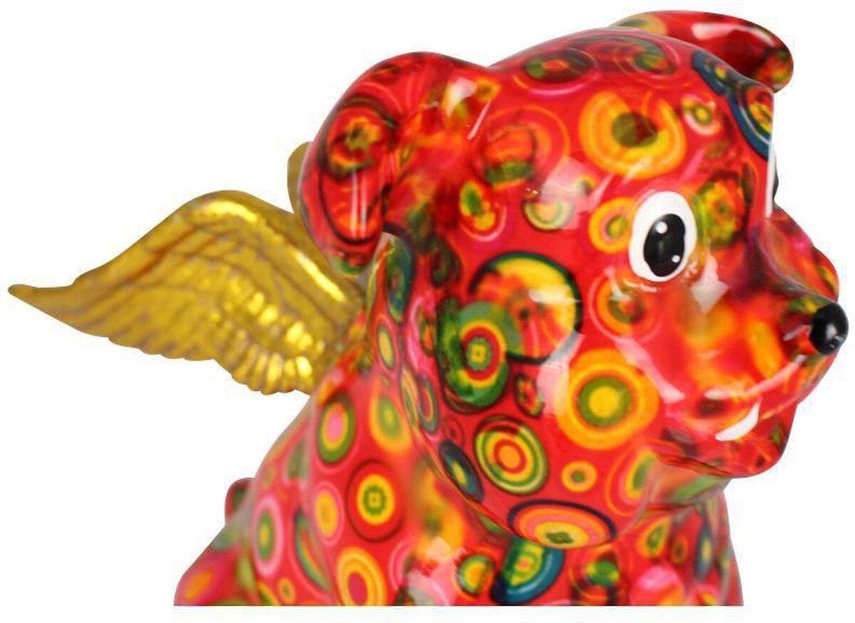 Deze spaarpot van een Engelse bulldog hond Angel's Buddy is gemaakt uit keramiek en draagt één van de kenmerkende kleurrijke patronen van Pomme Pidou. Met zijn mooie vormgeving en prachtige rode kleuren steelt hij altijd de show in jouw interieur. Ideaal als decoratie! De ruime muntgleuf in zijn rug en de rubberen dop aan de onderkant zorgen er voor dat je altijd makkelijk aan jouw centjes kan. Kenmerkend voor de dieren van Pomme Pidou is dat ze van begin tot eind met de hand zijn gemaakt van het best verkrijgbare keramiek en dus uniek!