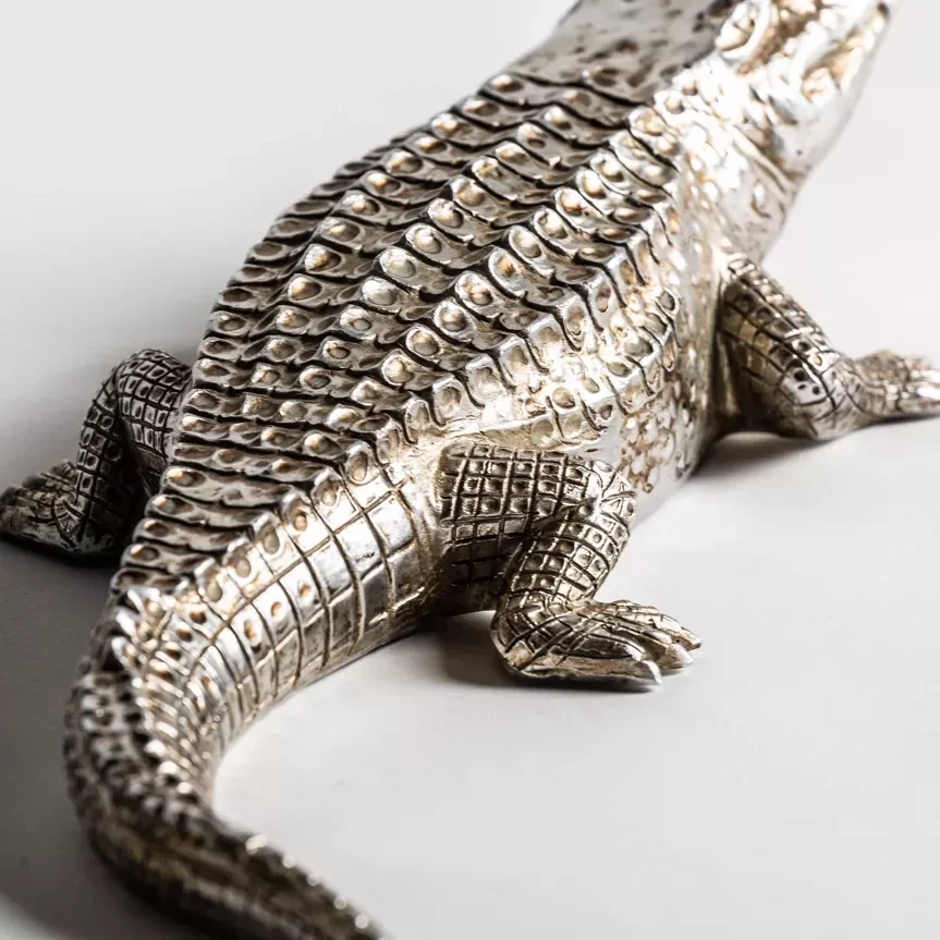 Beeld | Krokodil | Zilver | Polyresin | 2 stuks