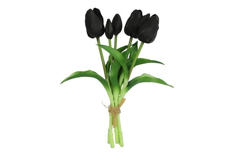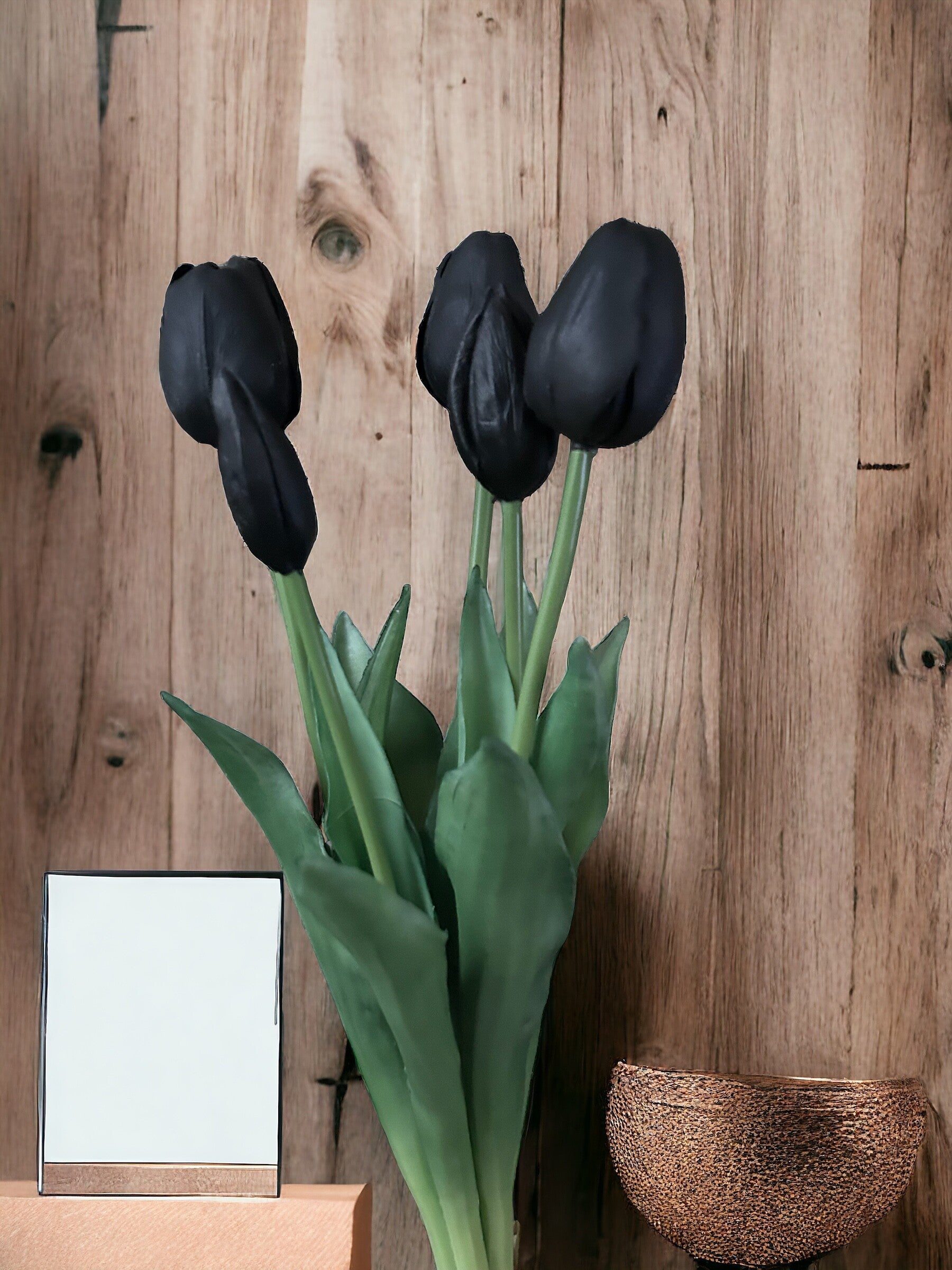 Tulpen "real touch" zwart (5 stuks waarvan 3 open en 2 dicht)