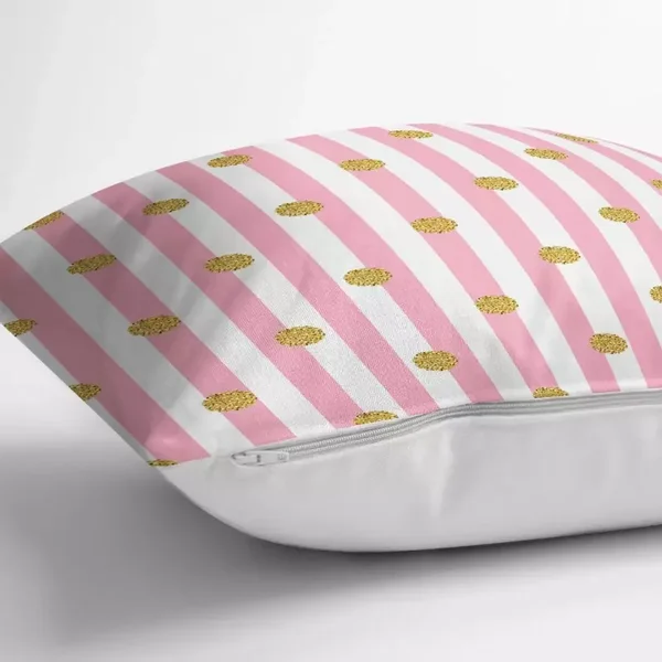 Deze prachtige sierkussenhoes in mooi rozen met wit gestreept met goudkleurige bolletjes erop is werkelijk prachtig en van hoogwaardige kwaliteit.