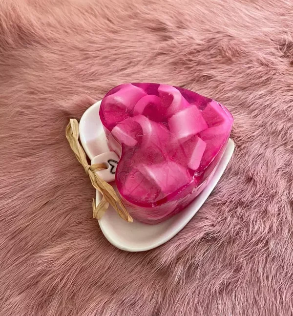 Hartjeszeep op hartvormig zeepschaaltje (lichtroze of felroze)