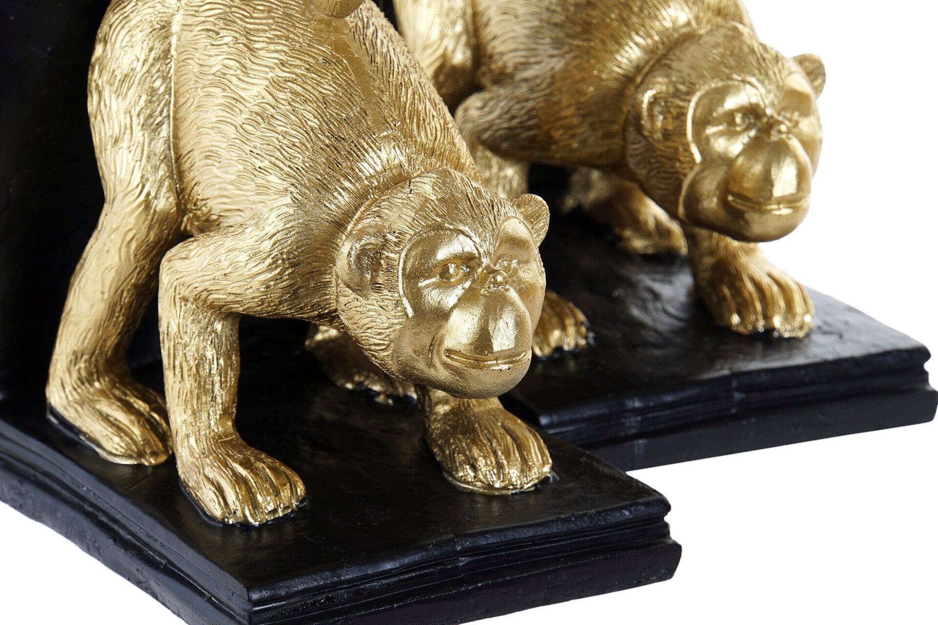 Deze boekensteunen met apen zijn zorgvuldig afgewerkt met een gedetailleerd design en een stijlvolle goud-zwarte kleur. Het stevige polyresin materiaal zorgt ervoor dat ze niet alleen decoratief zijn, maar ook praktisch en duurzaam.