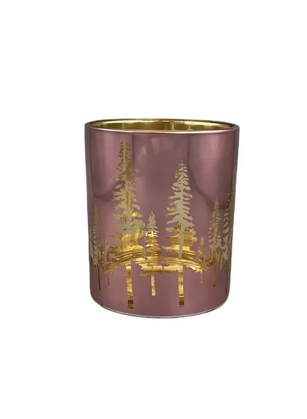 Theelichthouder / windlicht "Skove" met dennenbomen in roze en goud (10 cm of 8 cm)