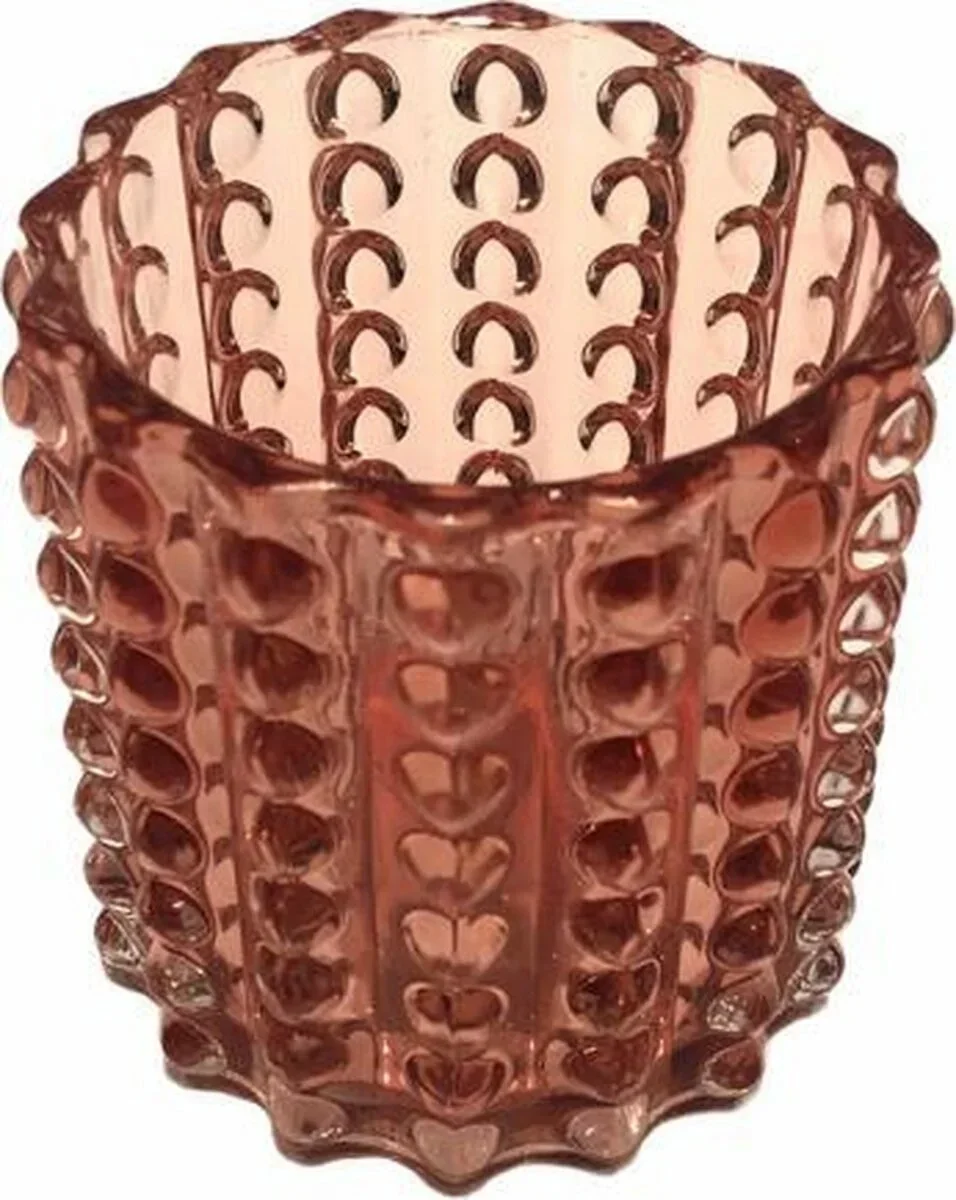 Theelichthouder / windlicht 'Bably' roze met bolletjes patroon
